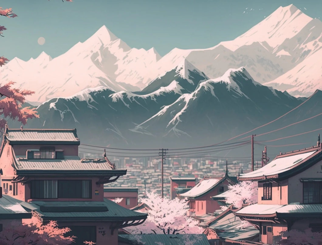 Immerse yourself in the tranquil beauty of an idyllic Asian city with our exclusive Missmadisonx 5D Diamond Painting Kit, "Harmony" This captivating artwork features light pastel colours, majestic snowy mountains, and a serene cityscape that creates a sense of peace and balance. Ideal for art enthusiasts and those seeking a calming escape from the hustle and bustle of everyday life.