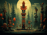 - 🌲 Spiritual representation of Native American culture with totem poles and nature motifs